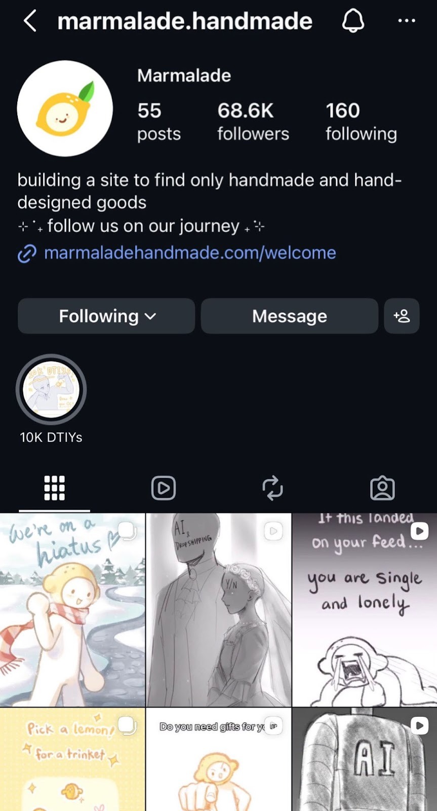 Marmalade is currently not an e-commerce website, so our main goal is to help promote seller’s existing shops! Many alternatives to Etsy, such as Ko-fi and Shopify, require the seller to direct all the traffic to their own sites, which is honestly quite difficult. I personally struggled a lot when I first started posting, so I know how frustrating it is to feel like the algorithm isn’t on your side. Our goal is to offer an alternative traffic source for those who no longer want to rely on Etsy.